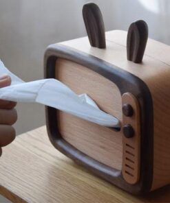 Retro TV Tissue Box Cover Wooden Handmade Rabbit Home Decoration